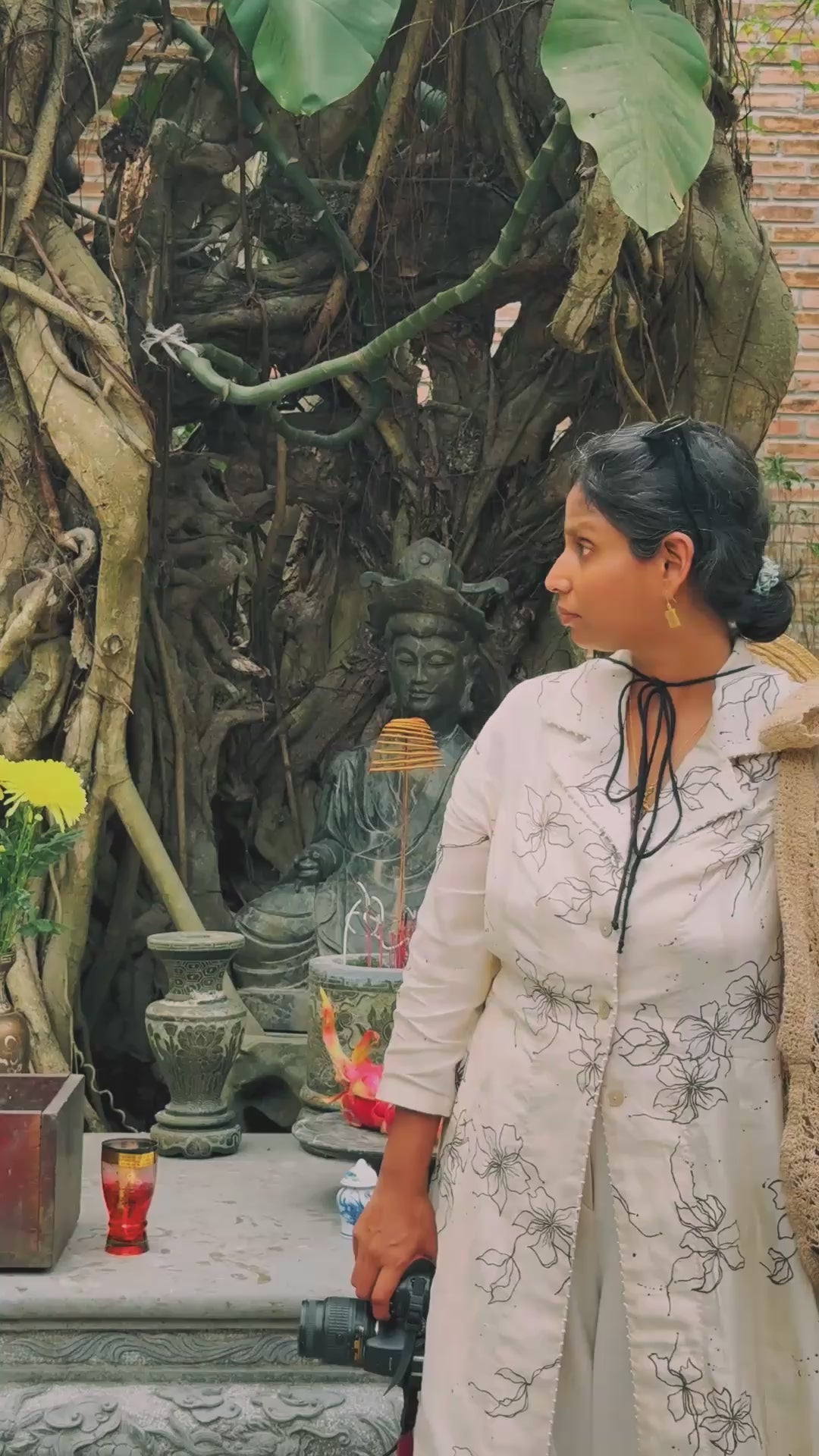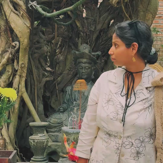 Statement shirt crafted with fine cotton silk. Speckled with hand painted floral motifs all over with tiny French knots along .