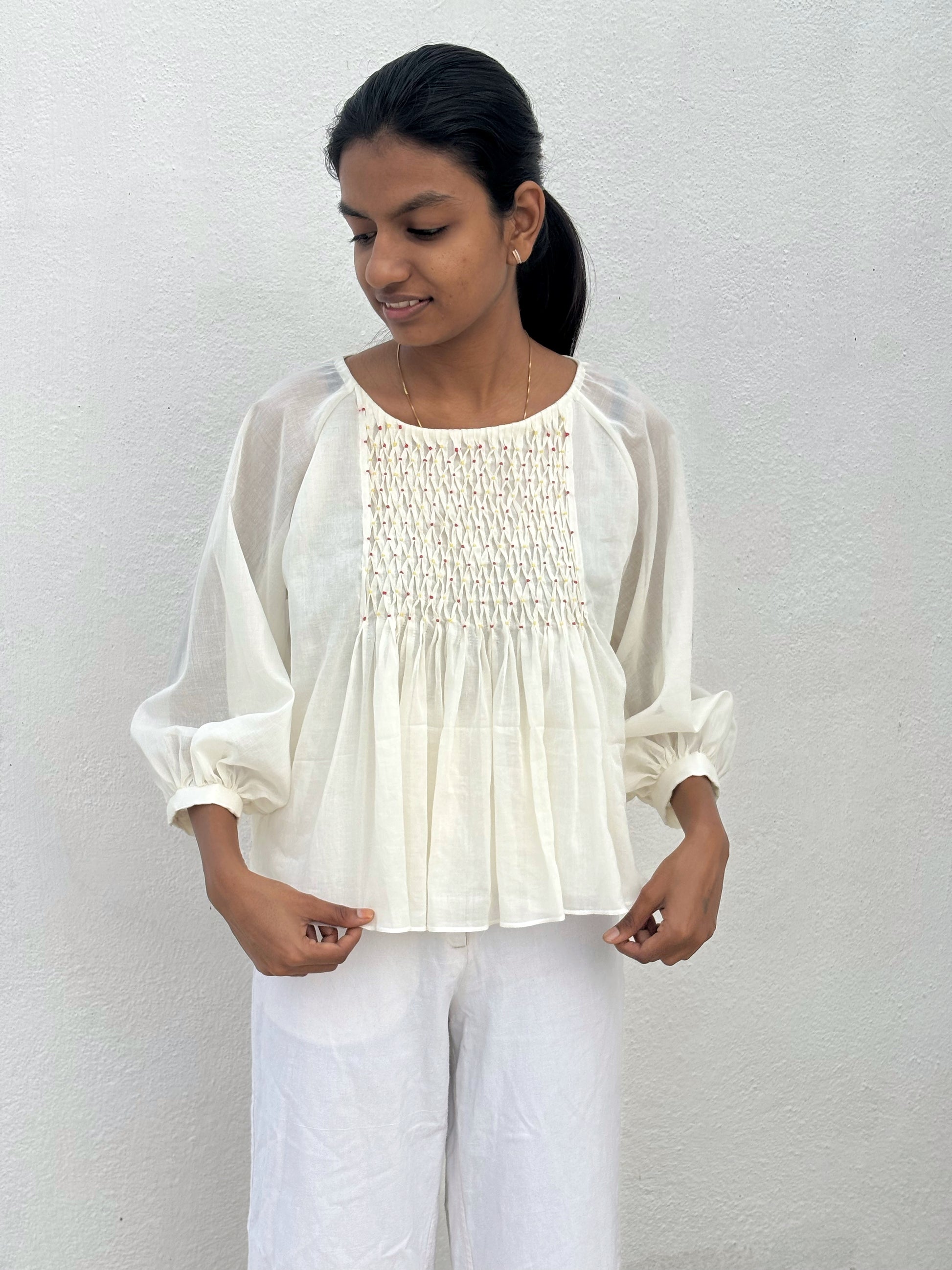 WHITE SMOCKING TOP
