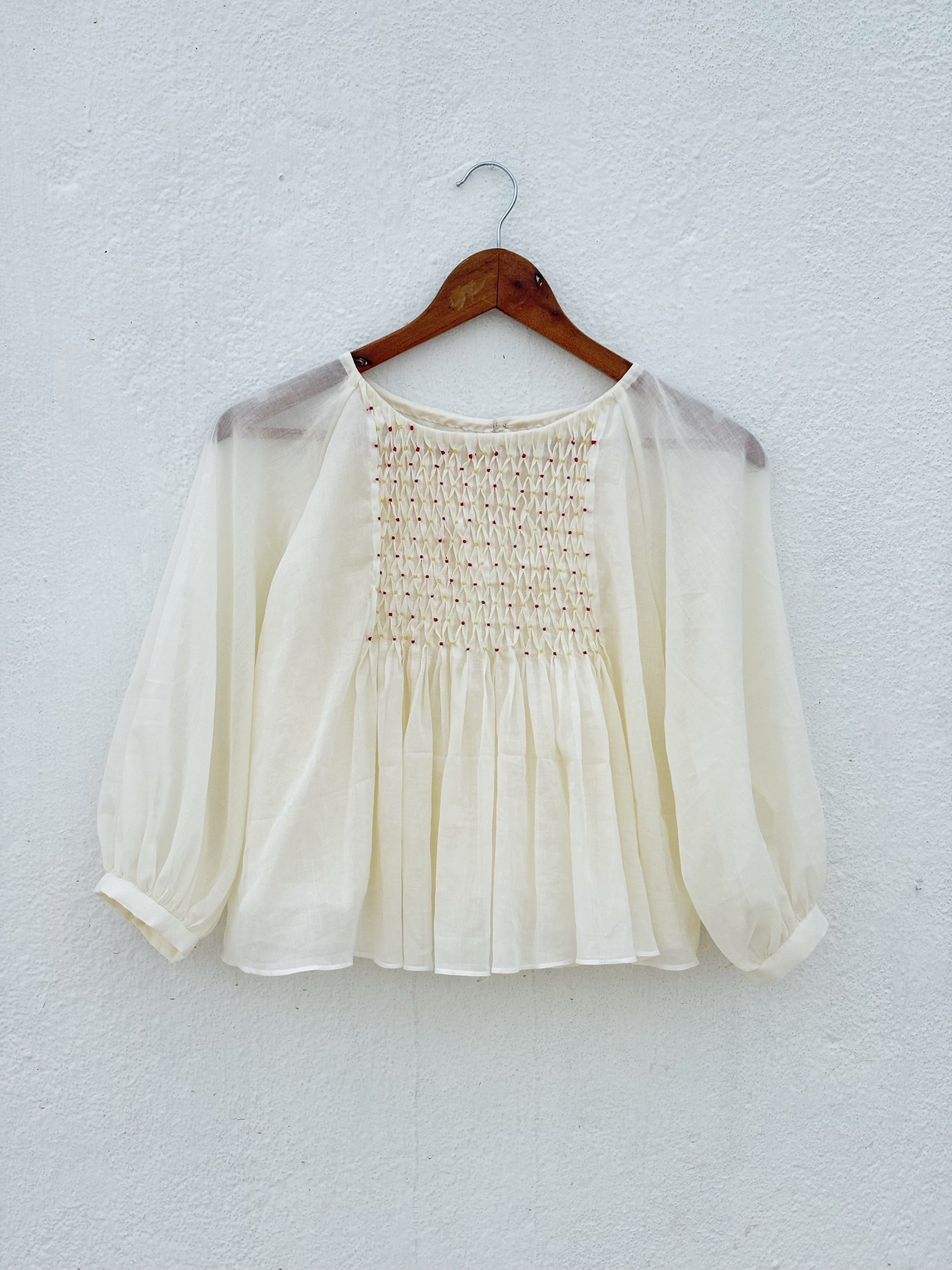 - The top has tiny smocked knots with dual colour and tiny tucks at the back